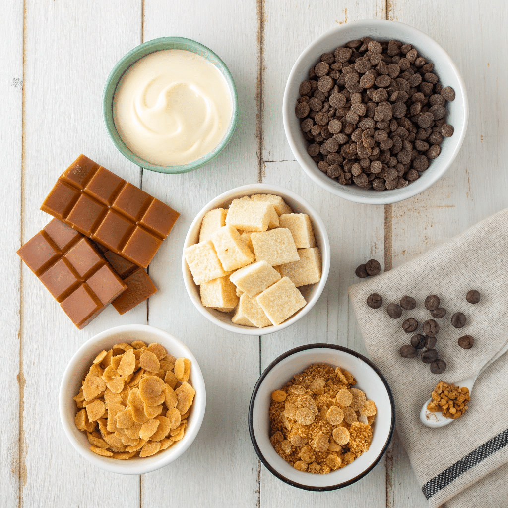 The crunch component is flexible — rice cereal adds light crispiness, while crushed cookies or candy give more sweetness and bite. You can even mix two types for extra texture.