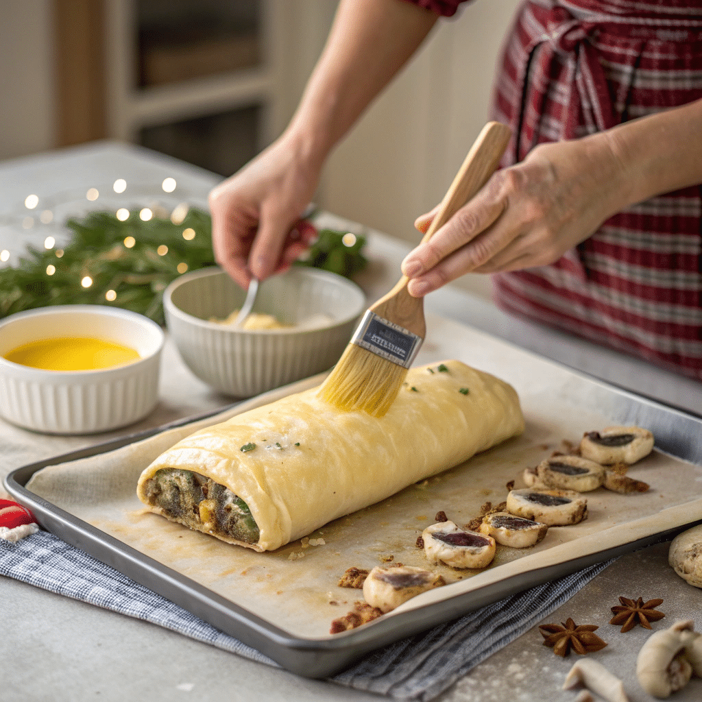Cook mushrooms until all liquid is gone to avoid soggy pastry. Let filling cool before wrapping to prevent pastry from tearing. Seal edges tightly for a neat presentation. Serve with gravy or cranberry sauce for extra holiday flair.
