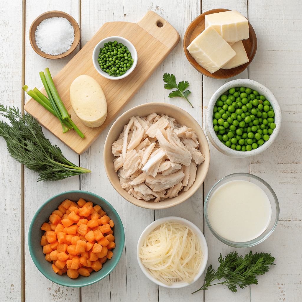 Use leftover chicken instead of turkey. Replace cream with coconut milk for a dairy-free version. Swap peas with green beans or corn. Try crescent roll dough instead of puff pastry for a quicker topping.